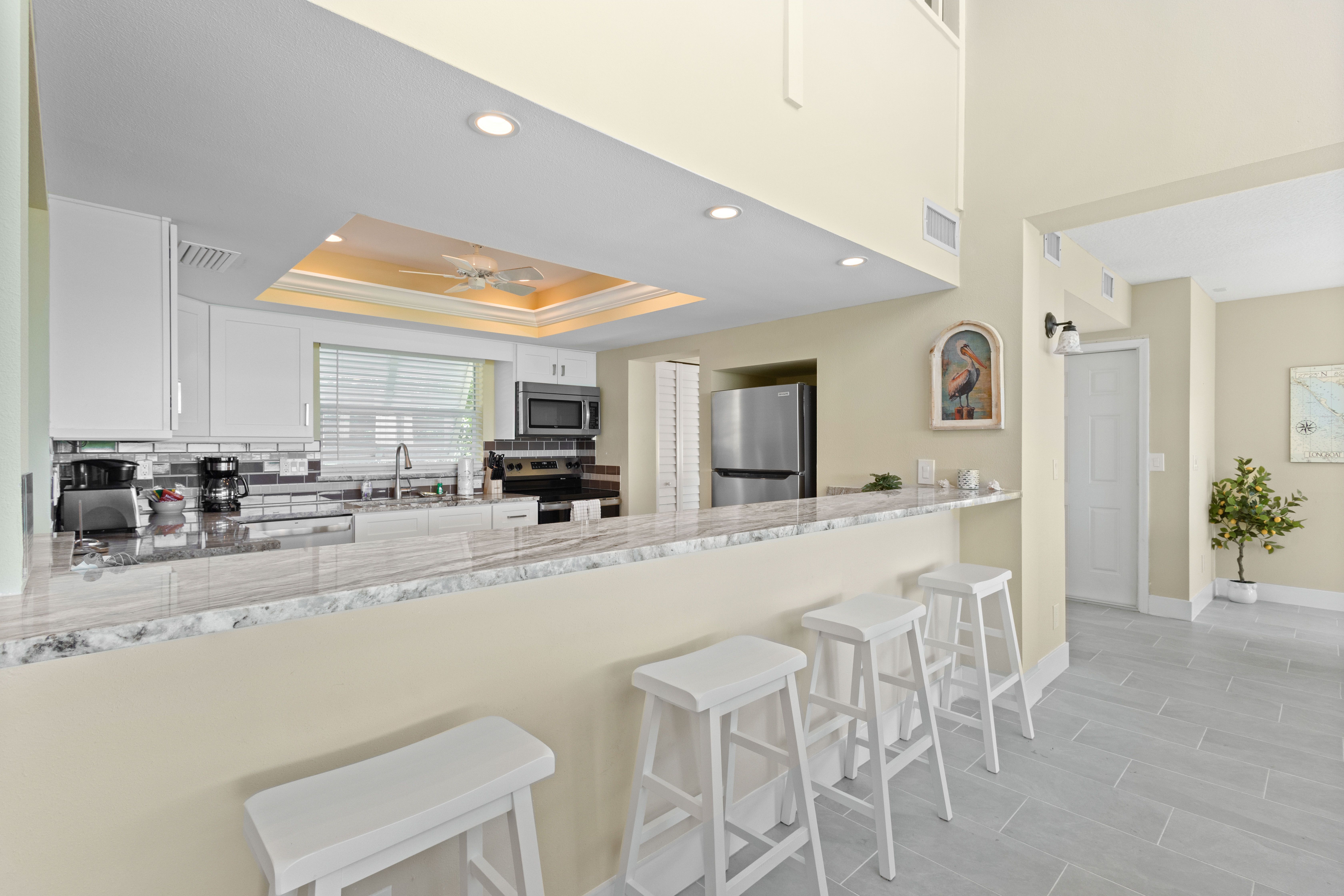 Unit #27 Features: Three-bedroom, three-bathroom large villa with sweeping bay views from various angles of the unit. Features include two dining areas, an upgraded full-size kitchen, an assigned, complimentary boat dock (located in the community dock area), two outdoor private parking spaces, wireless Internet, private washer/dryer, bayfront patio areas and spacious accommodations.