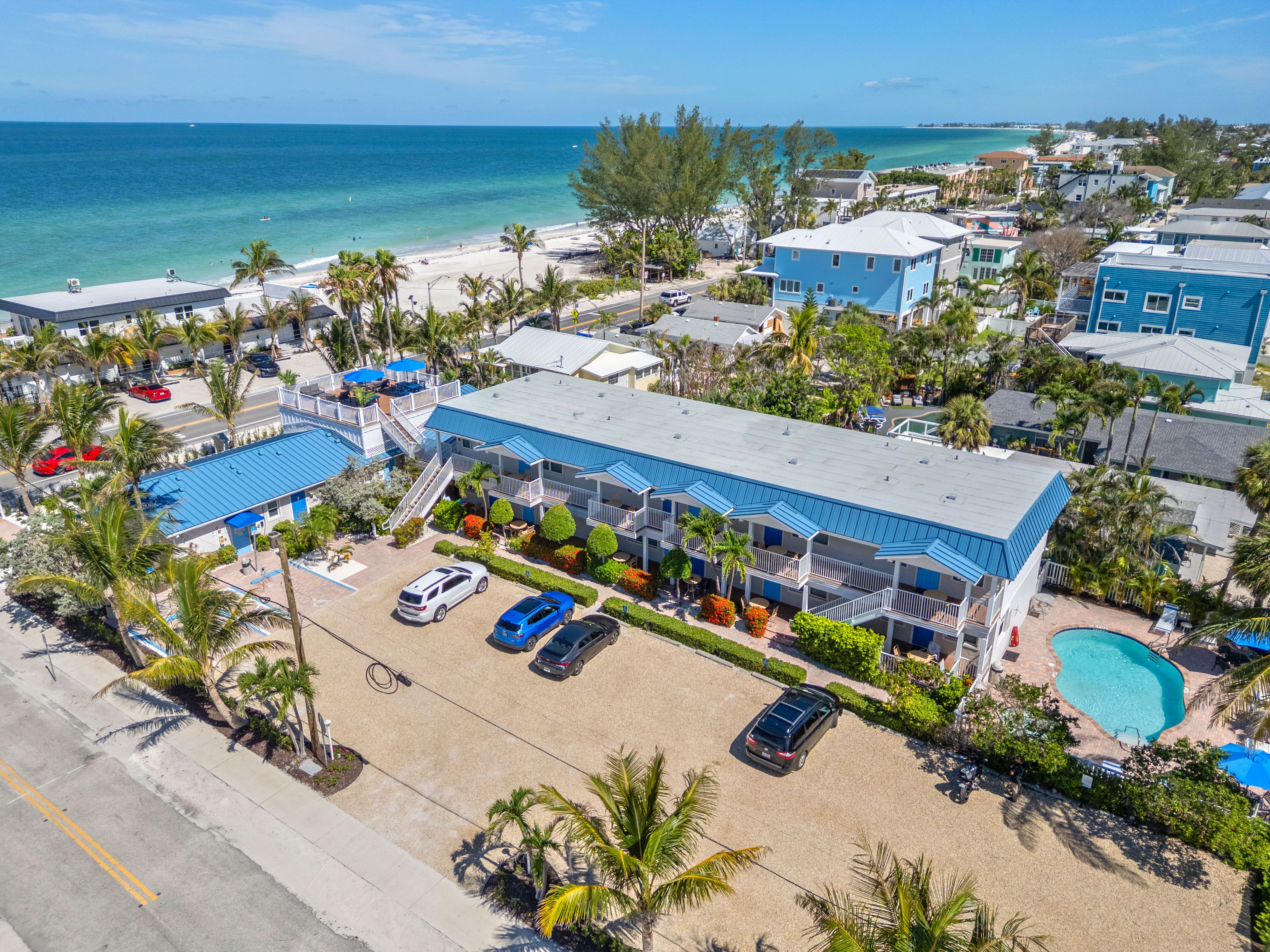 Accommodations: The Beach Club at Anna Maria is a relaxing, yet modern retreat located across the street from the Gulf of Mexico. Choose from our various unit styles including studio, one-, two, and three-bedroom units. Enjoy all the amenities of home in these fully furnished condominiums, including large Plasma TVs, full-sized kitchen with stainless steel appliances and granite countertops, dining area and modern, yet beachy, decor.