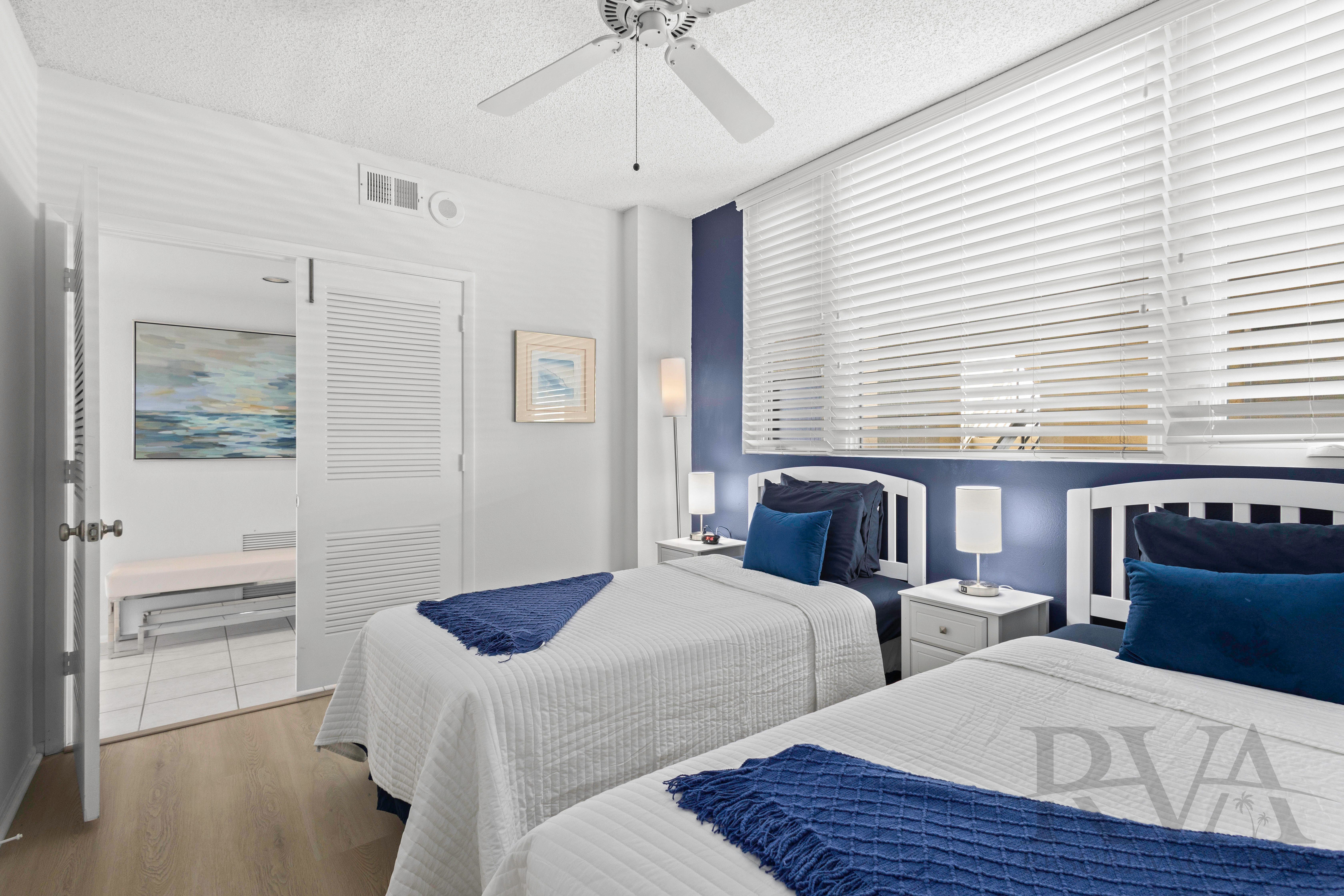Indulge in the comfort of a queen-sized master bed and two twin beds in the guest room, complemented by tile floors throughout and a 46" flat-screen TV. Partial bay views add an extra layer of charm to this already delightful unit, making it the ultimate destination for a serene and rejuvenating vacation. Step out onto the extended balcony and soak in the panoramic beauty of the bay, creating unforgettable memories with loved ones.