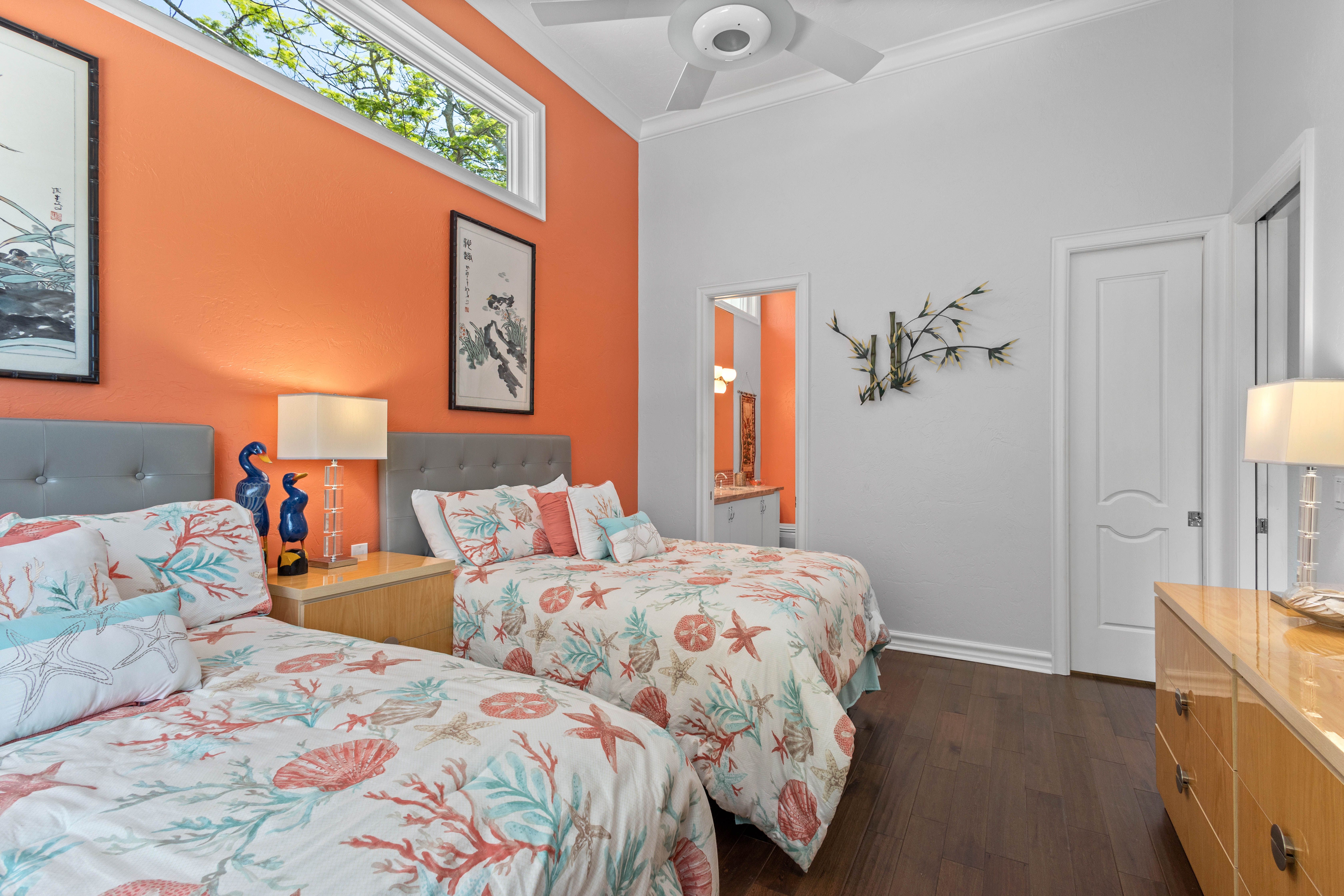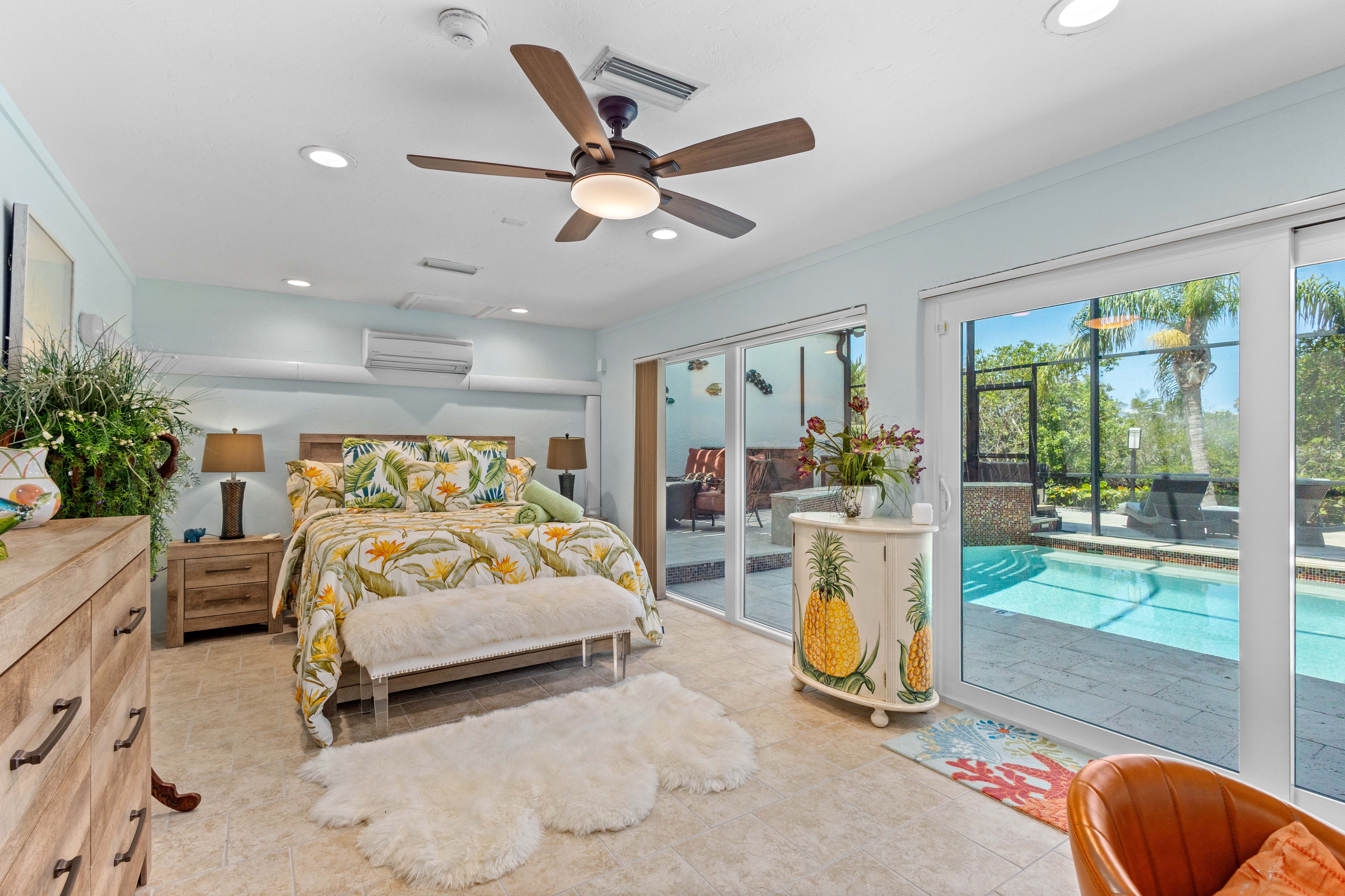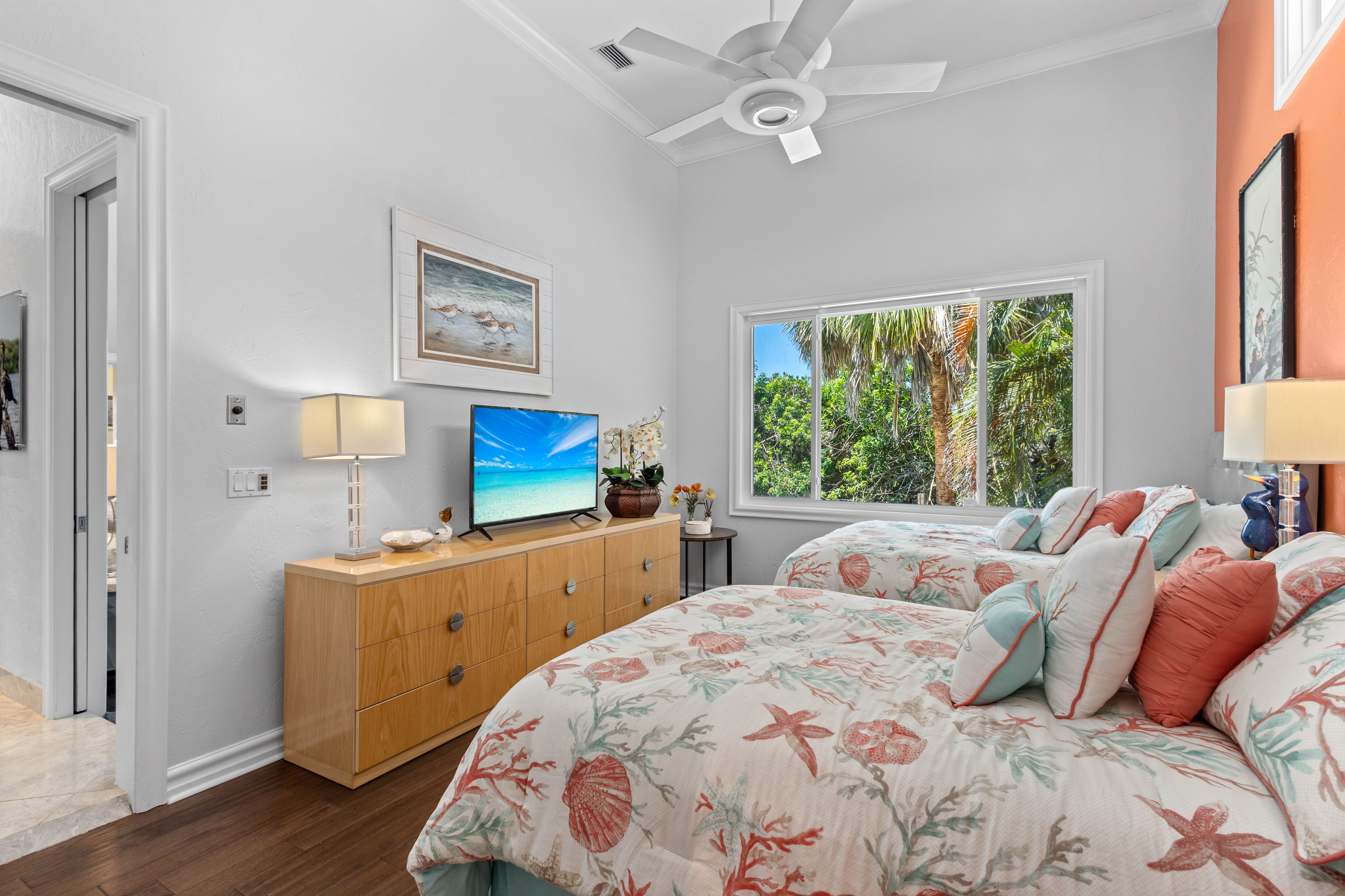Each of the four bedrooms is a private oasis with en-suite bathrooms, offering comfort and privacy for families or groups. The expansive primary suite includes a spa-like bathroom and private balcony views overlooking the pool and canal.