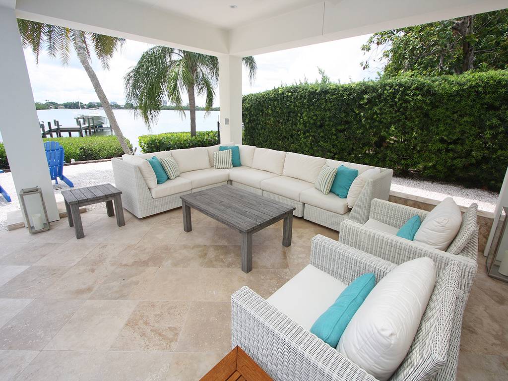 Amenities: Private Community, Community Beach Access and Pavilion, Fishing Dock, Modern Decor, Stainless Steel Appliances, Granite Countertops, Travertine Floors, Several Patios, Outdoor Dining Space, Grill, Full-Size Kitchen, Open Air Pool with Bay Views, Separate en Suite Guest Bedrooms, Washer/Dryer, Near St. Armand's Circle