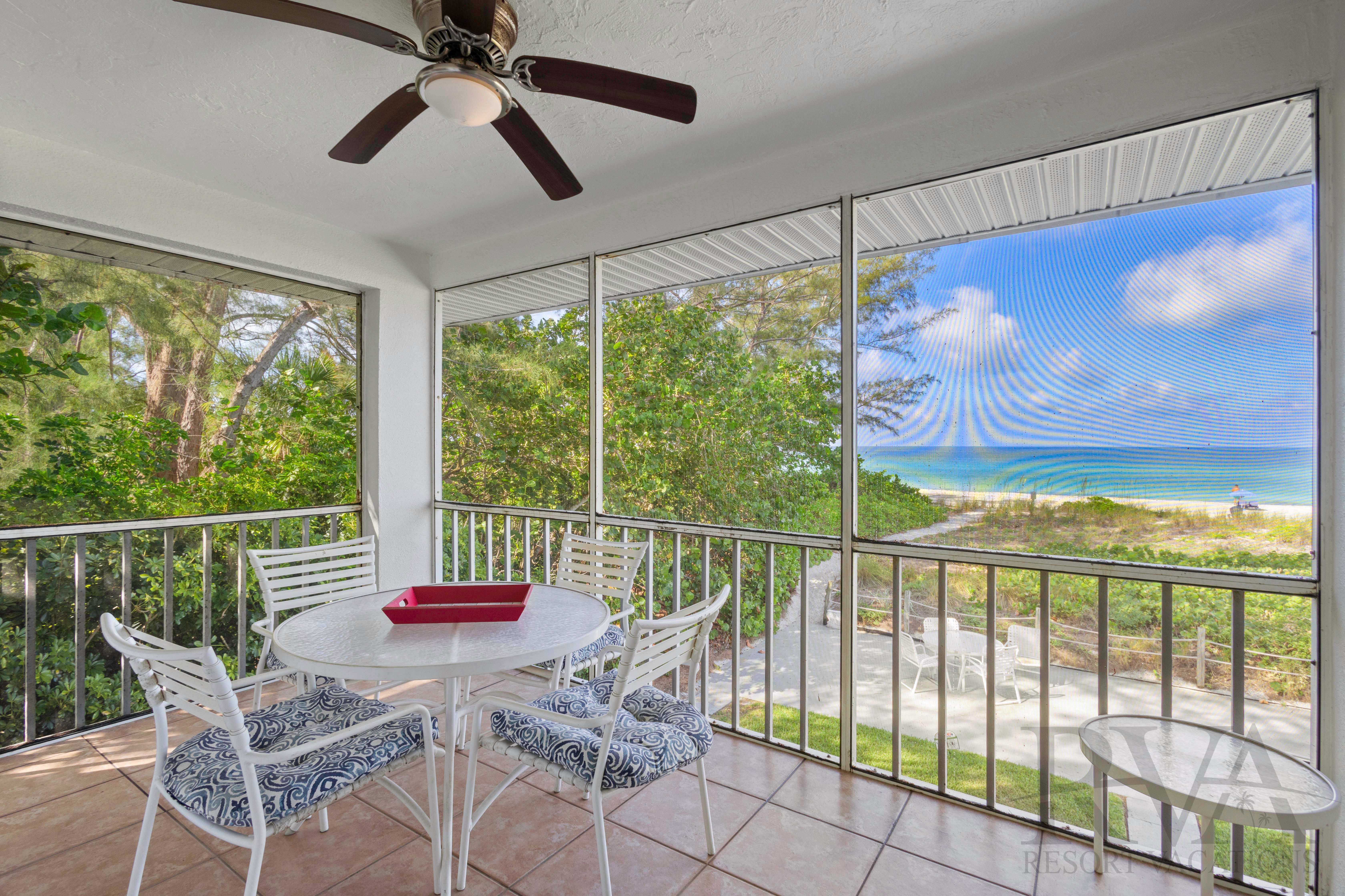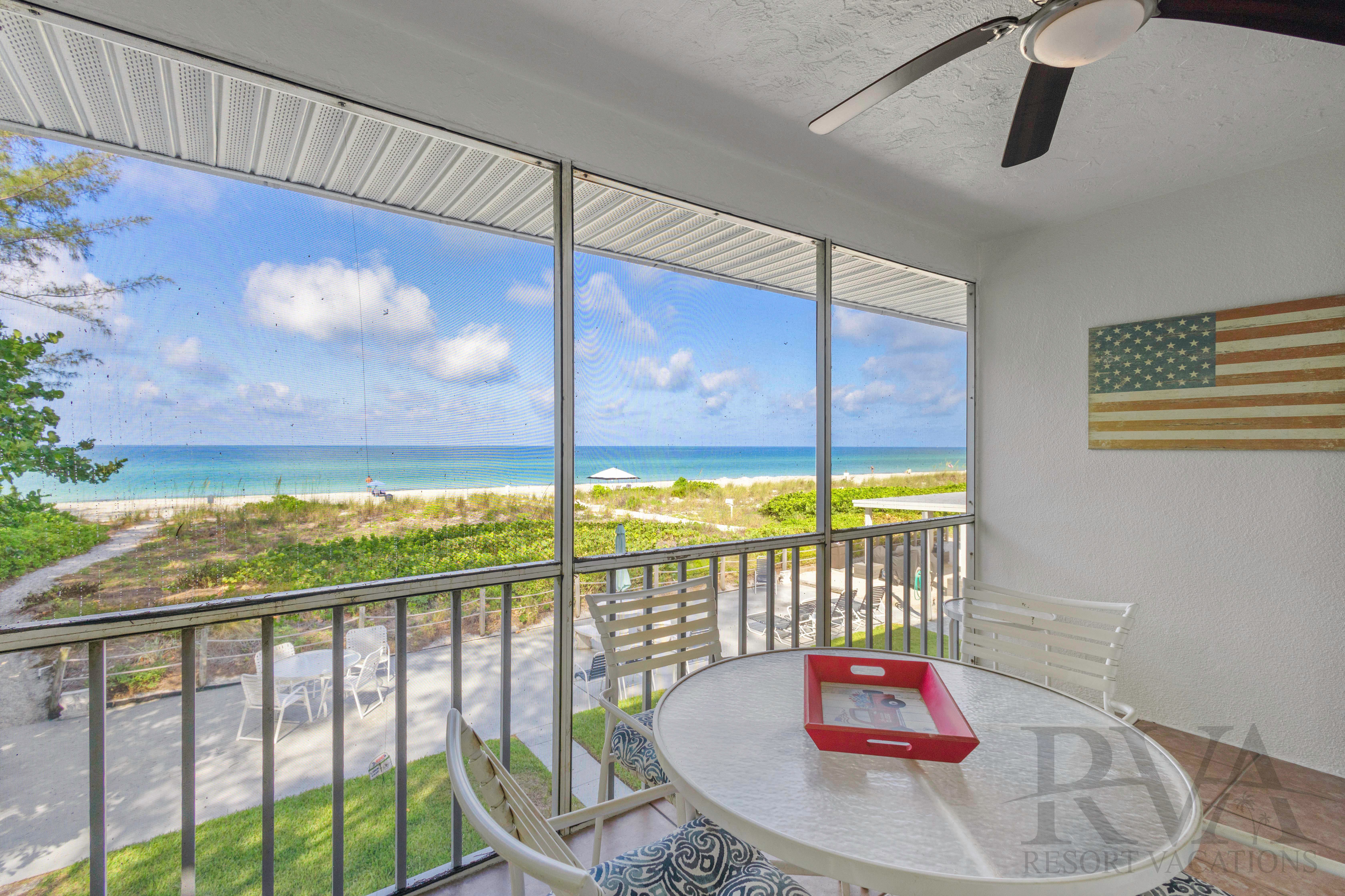RVA features a narrow footpath through the native scenery leads you to the private Gulf of Mexico beach at the Outrigger Resort. The Outrigger grounds offer coin-operated laundry facilities, BBQ areas, and direct beach access. Relax by the heated community pool, take a stroll along the romantic beaches, or enjoy a short drive to the world famous St. Armand's Circle. This one-bedroom, one-bath Gulf front end unit offers beautiful decor and relaxing views. Relax on your private screened patio and escape to paradise.