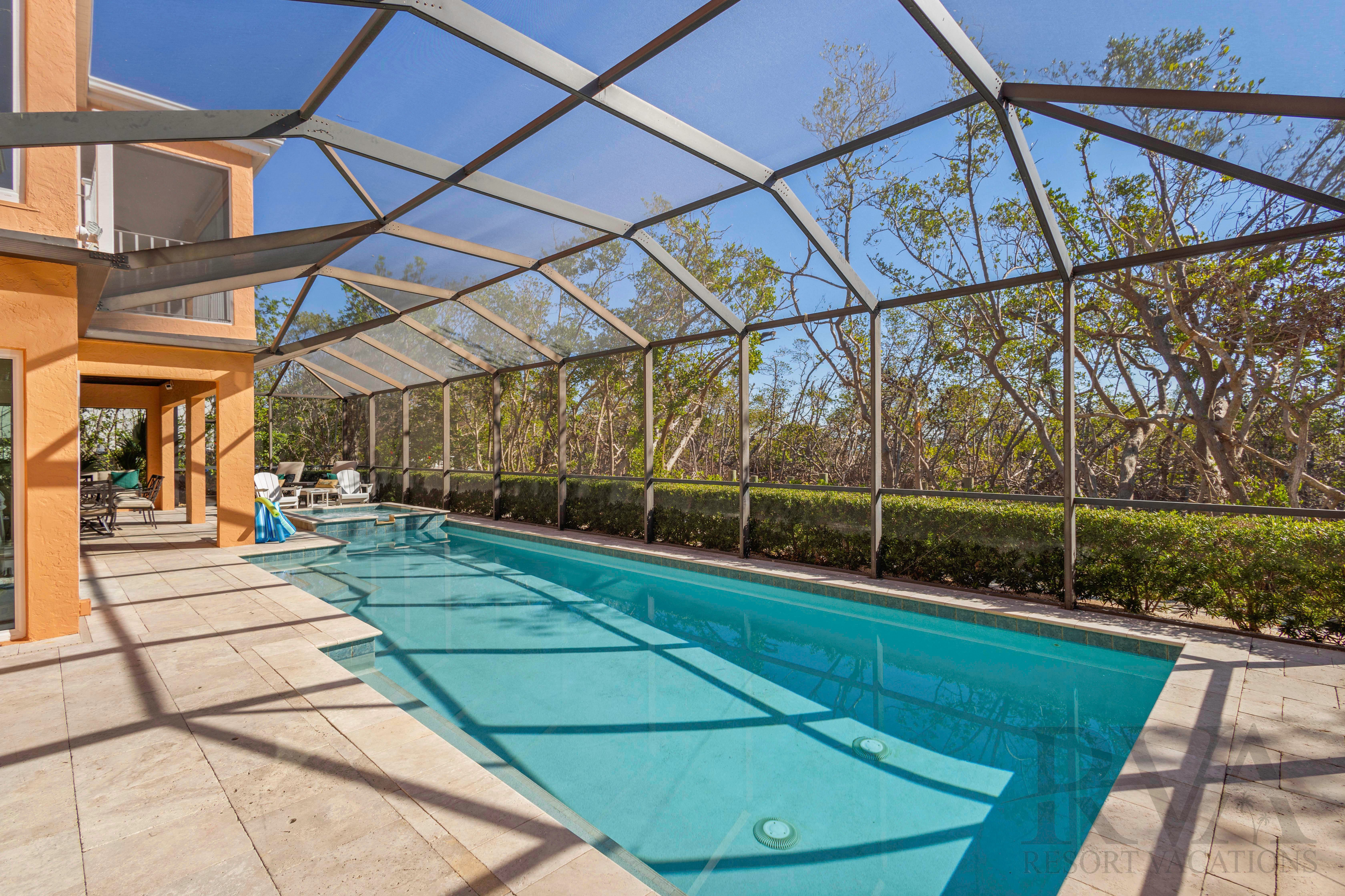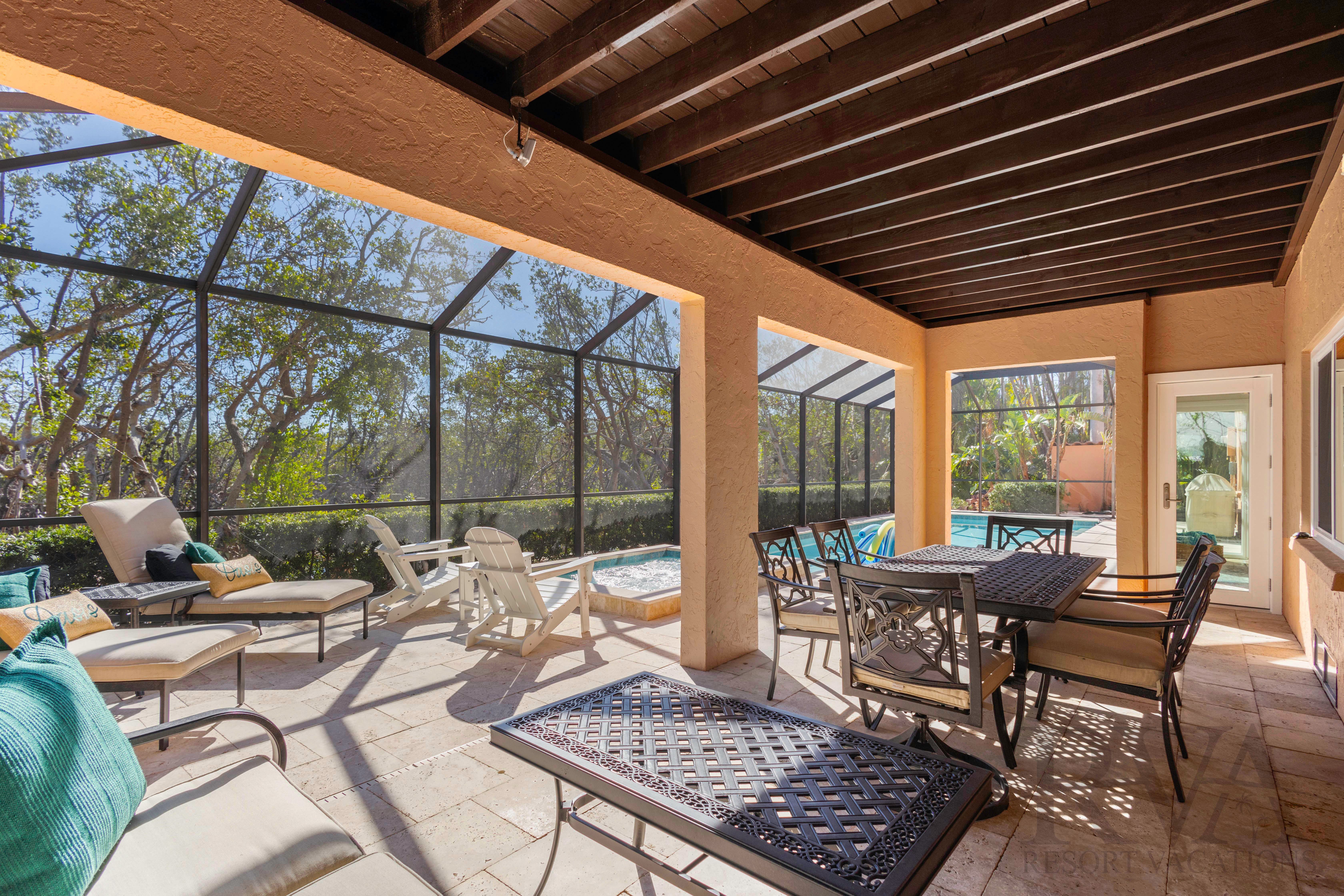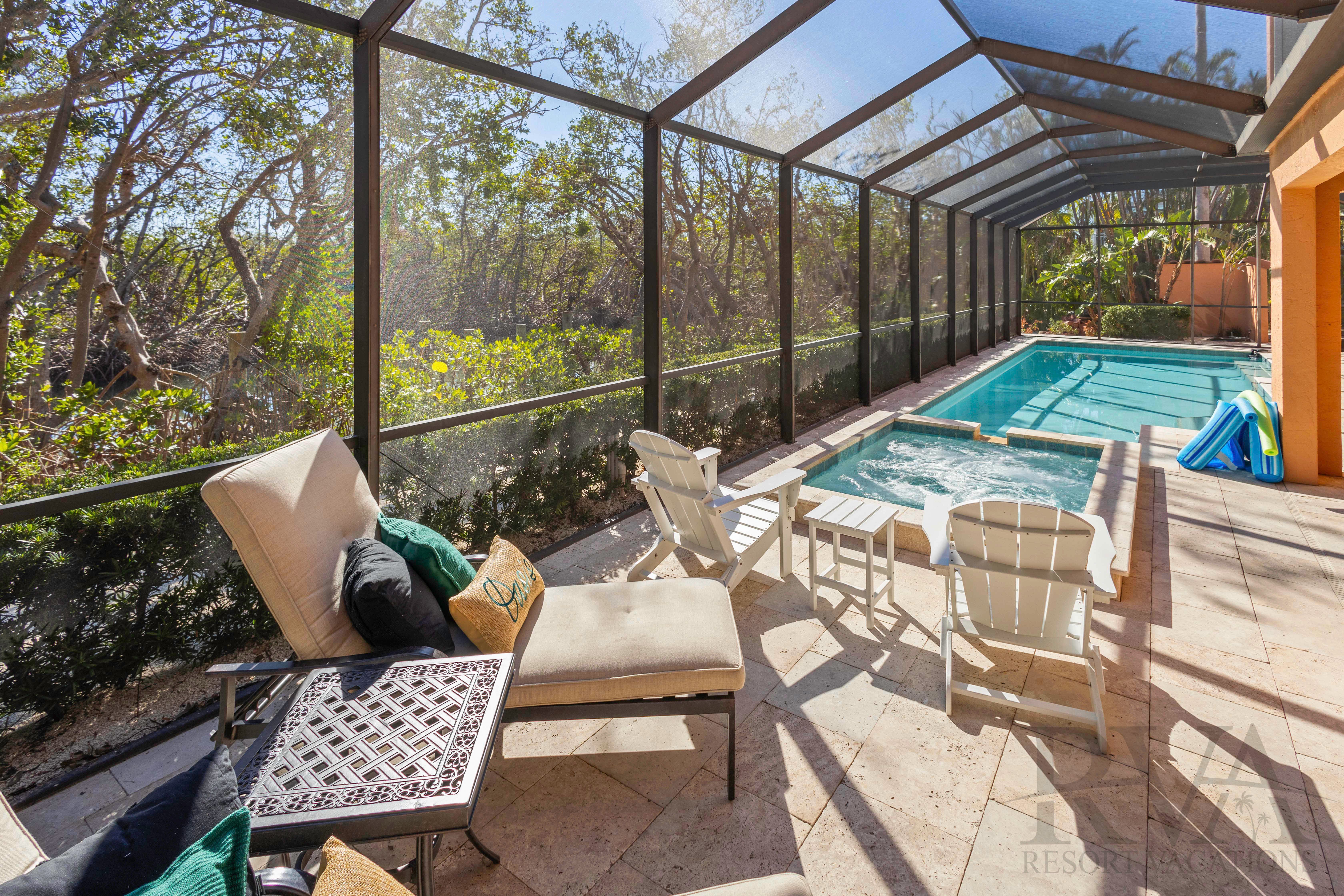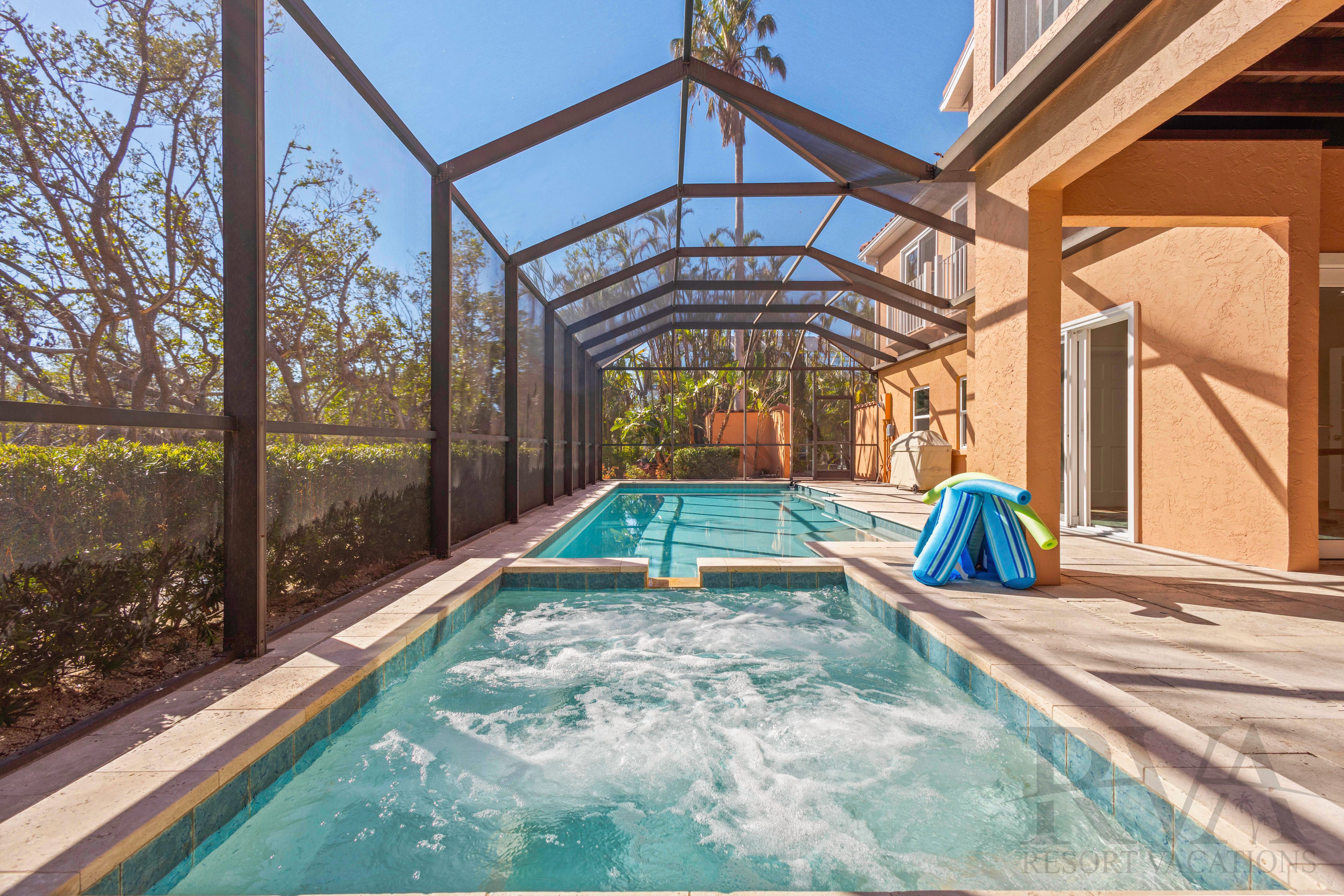 Outside, your private island playground awaits. Relax in the large heated pool and spa, or enjoy evenings under the covered lanai. The professionally landscaped yard, filled with palms and tropical plants, adds to the serene ambiance.