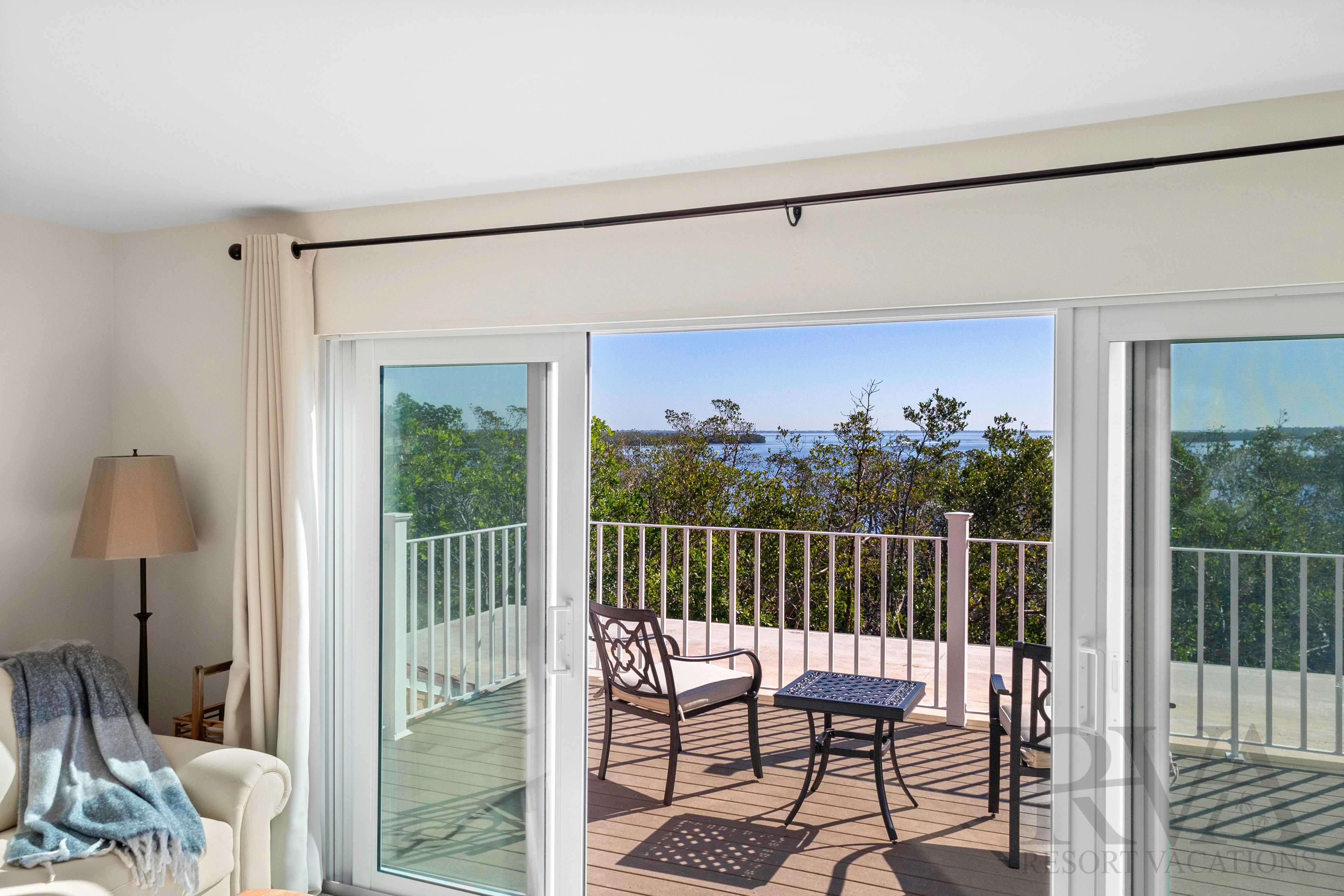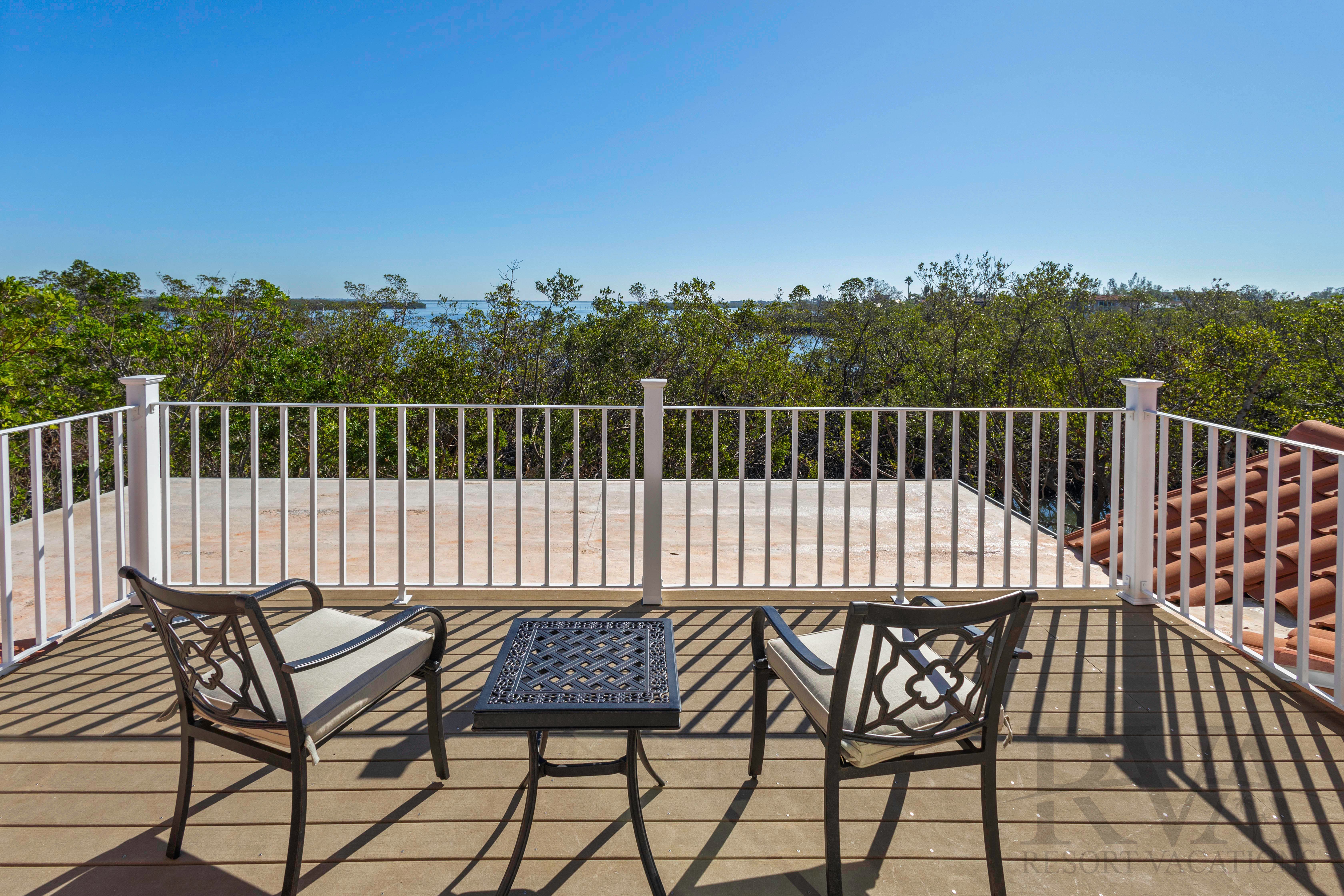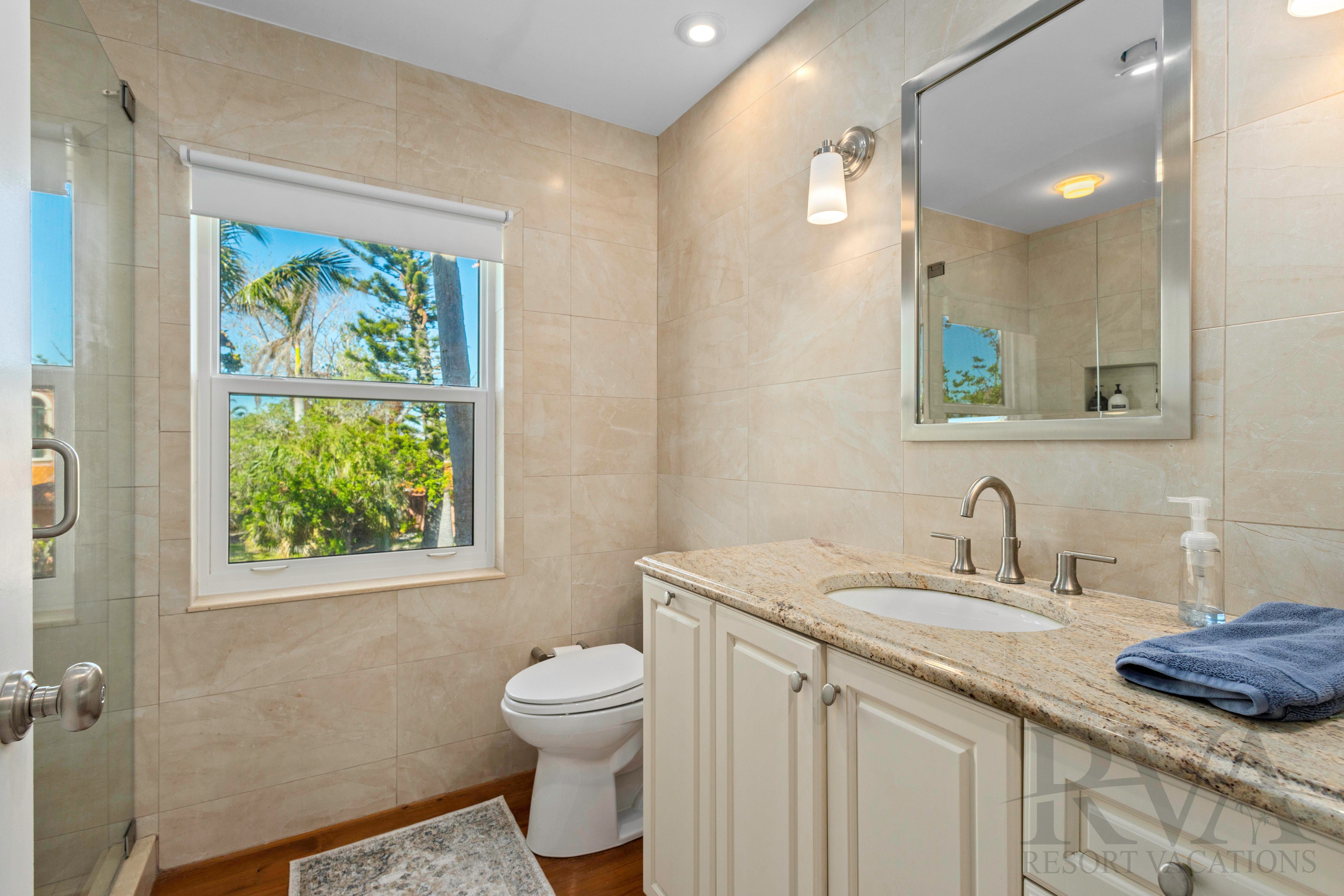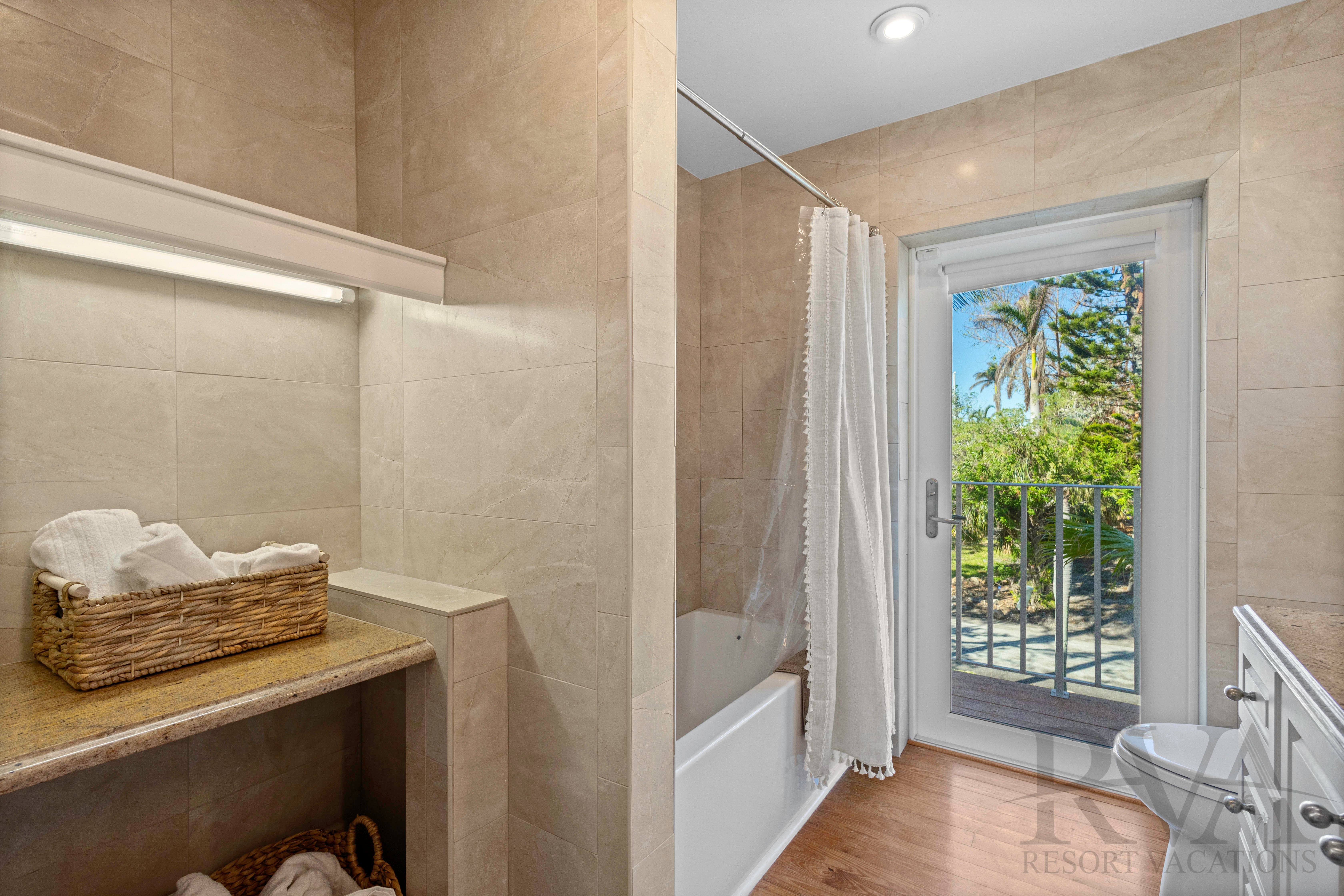 Retreat to the main-level primary suite, complete with a private bath and access to the large covered lanai, where you can savor the gentle sea breezes and tropical scenery. A second bedroom suite on the main floor also offers lanai access, while the upper-level guest suite provides ultimate privacy with its king bed, sitting area, and rooftop deck overlooking the bay.