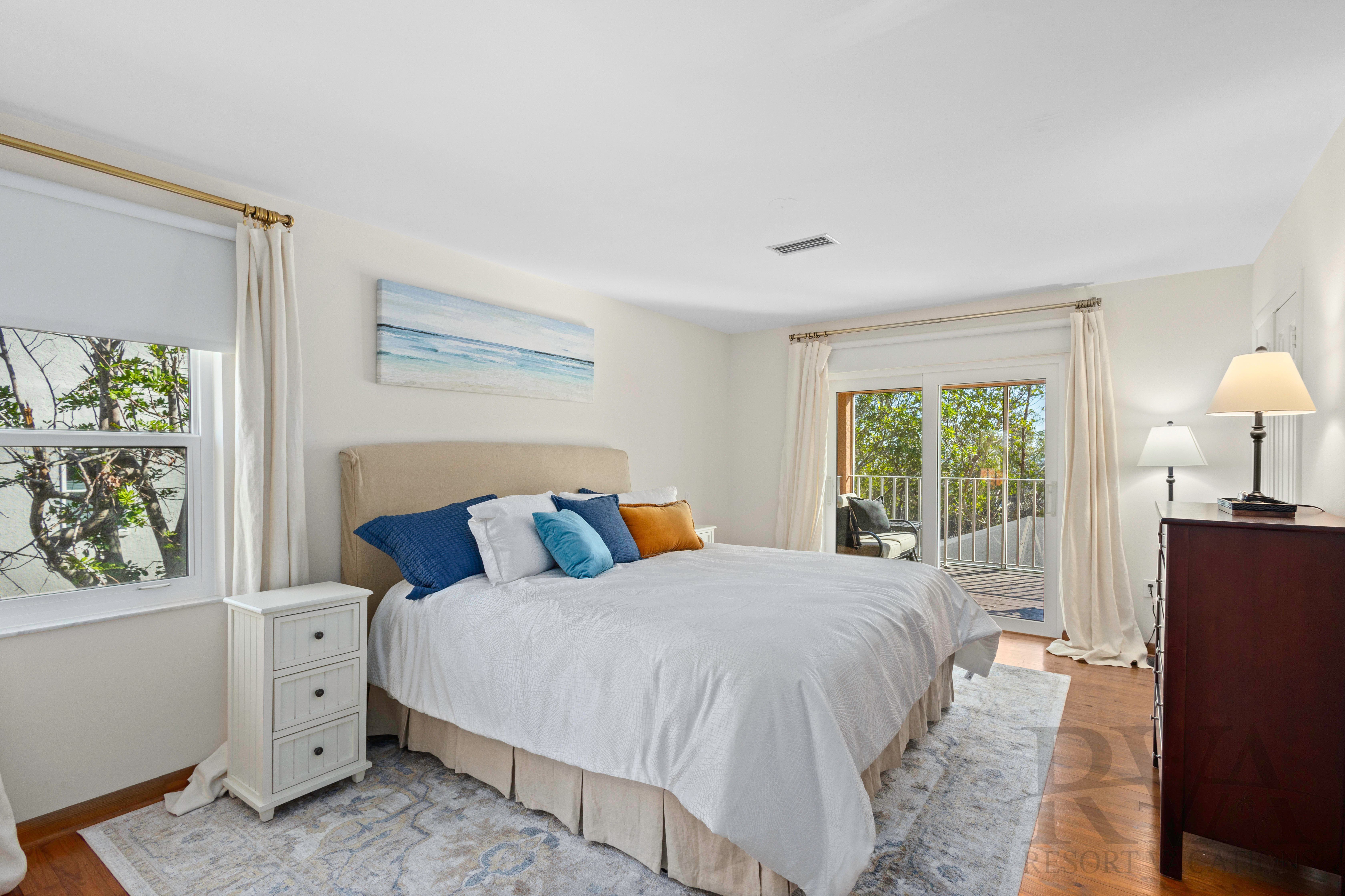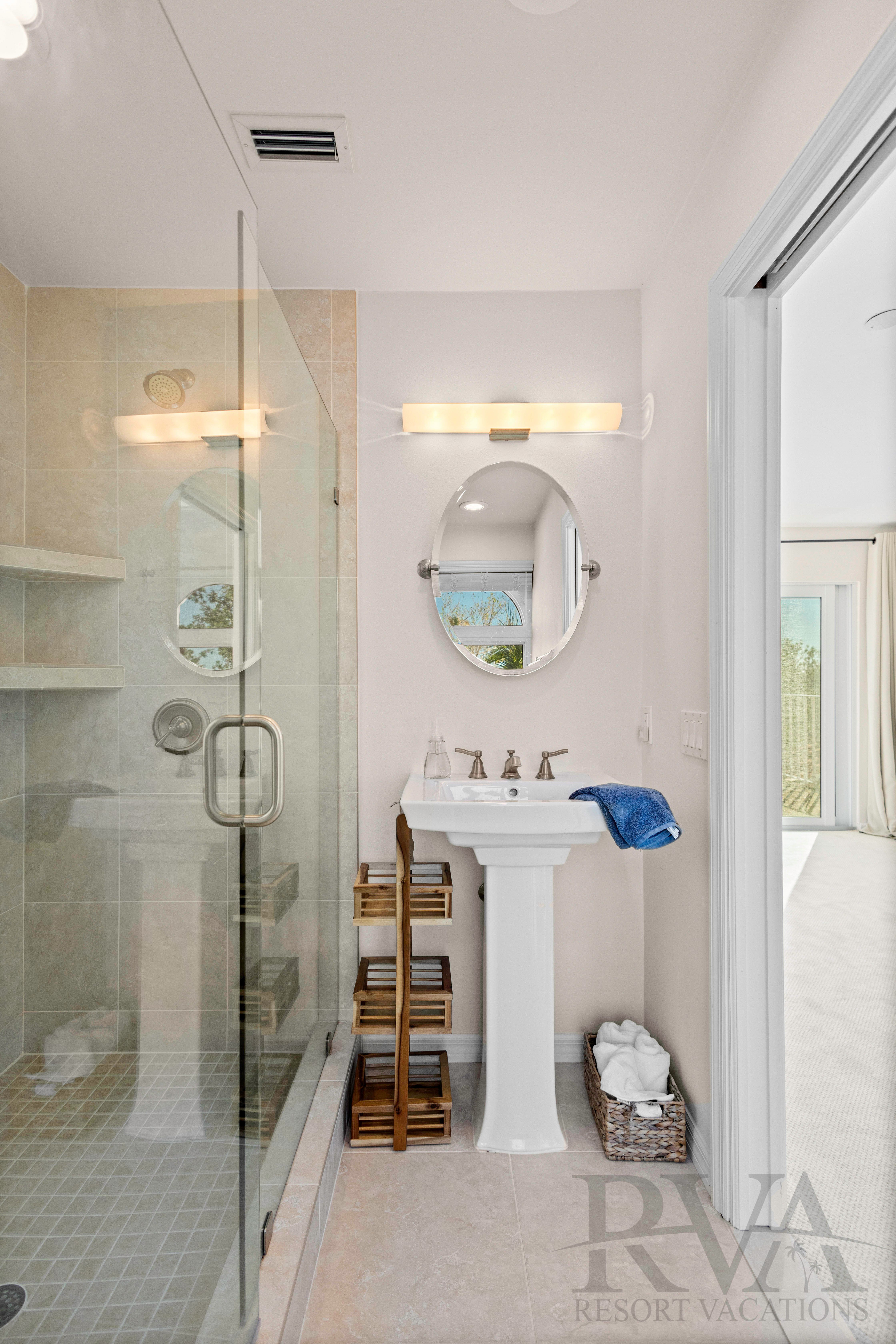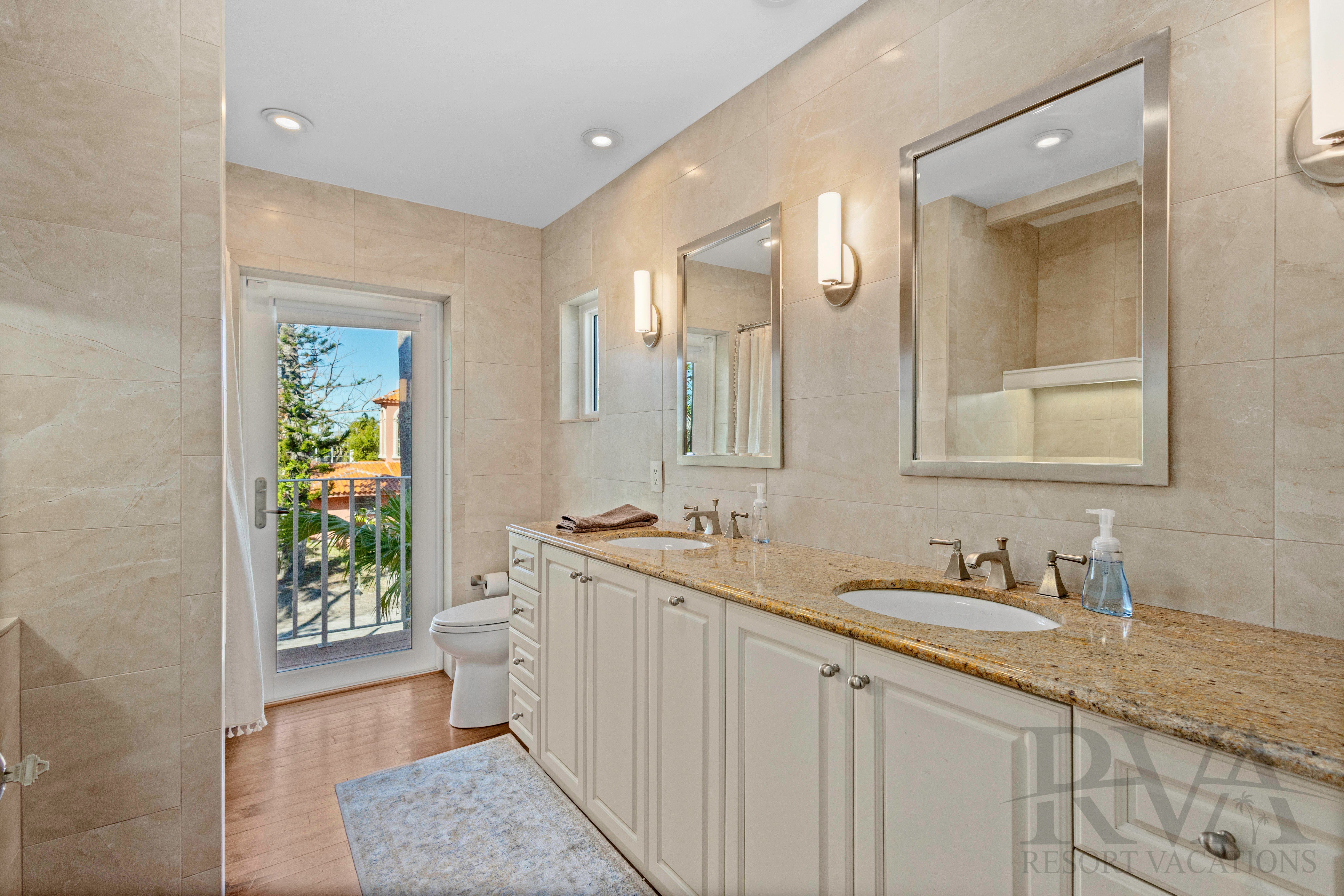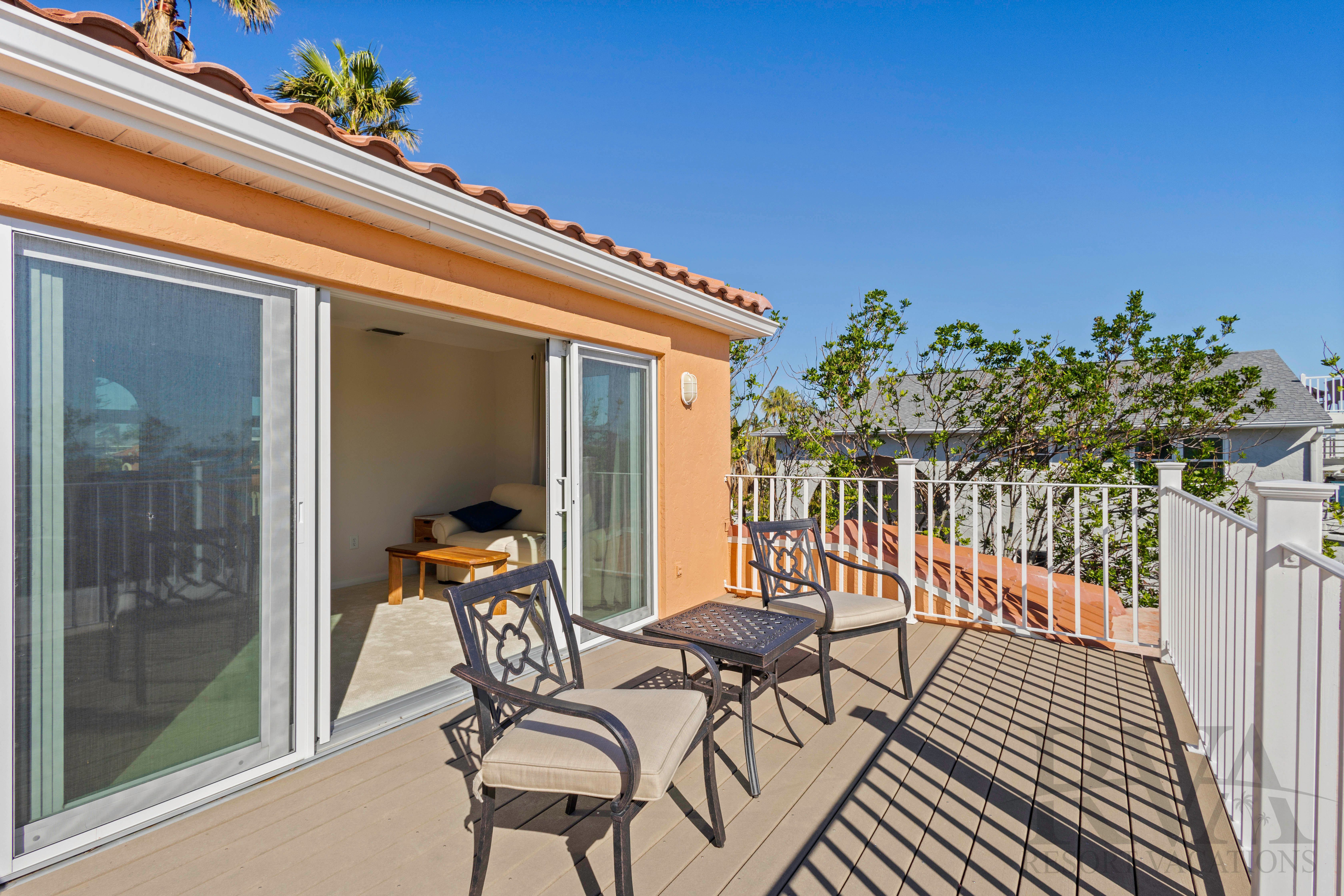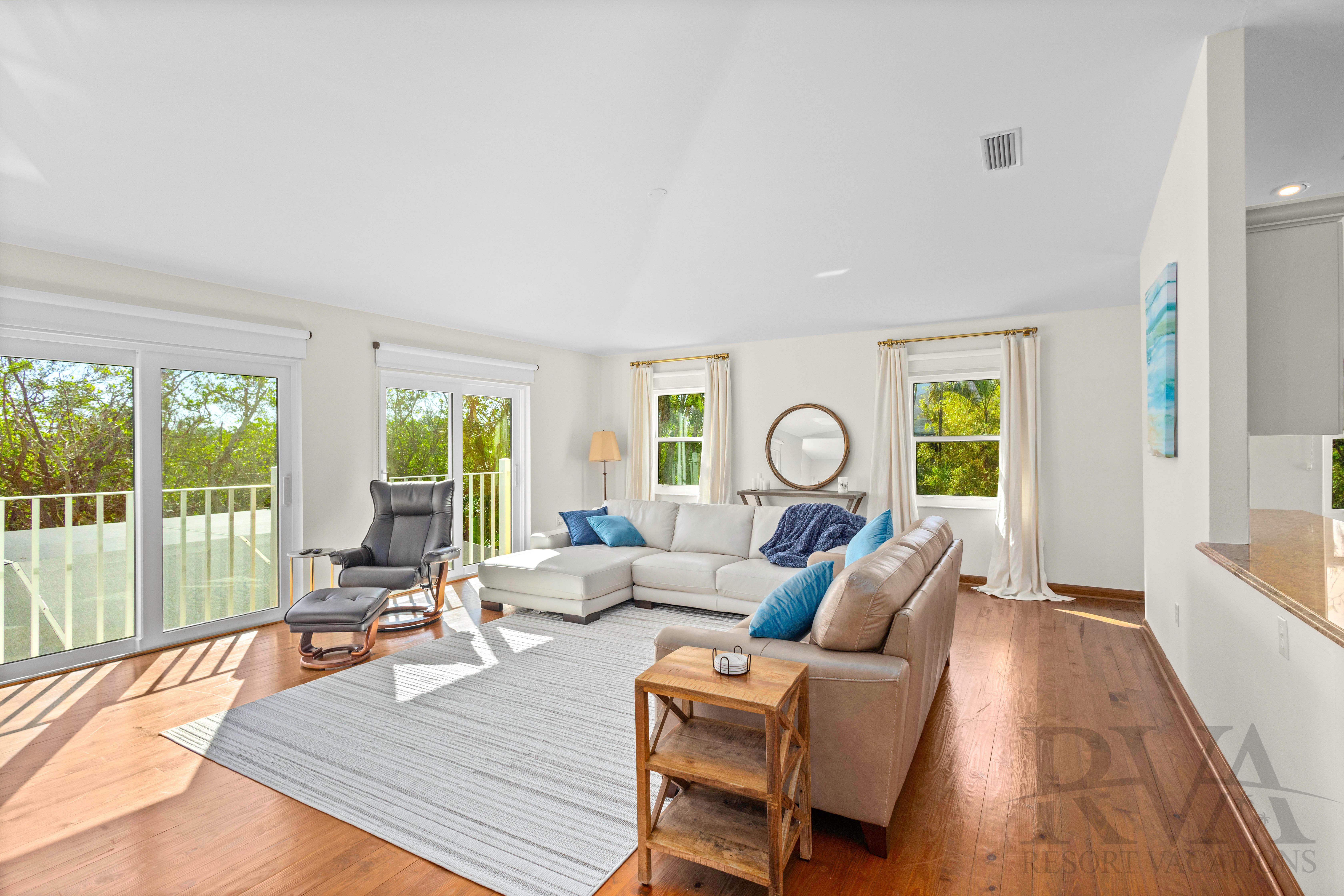 Retreat to the main-level primary suite, complete with a private bath and access to the large covered lanai, where you can savor the gentle sea breezes and tropical scenery. A second bedroom suite on the main floor also offers lanai access, while the upper-level guest suite provides ultimate privacy with its king bed, sitting area, and rooftop deck overlooking the bay.