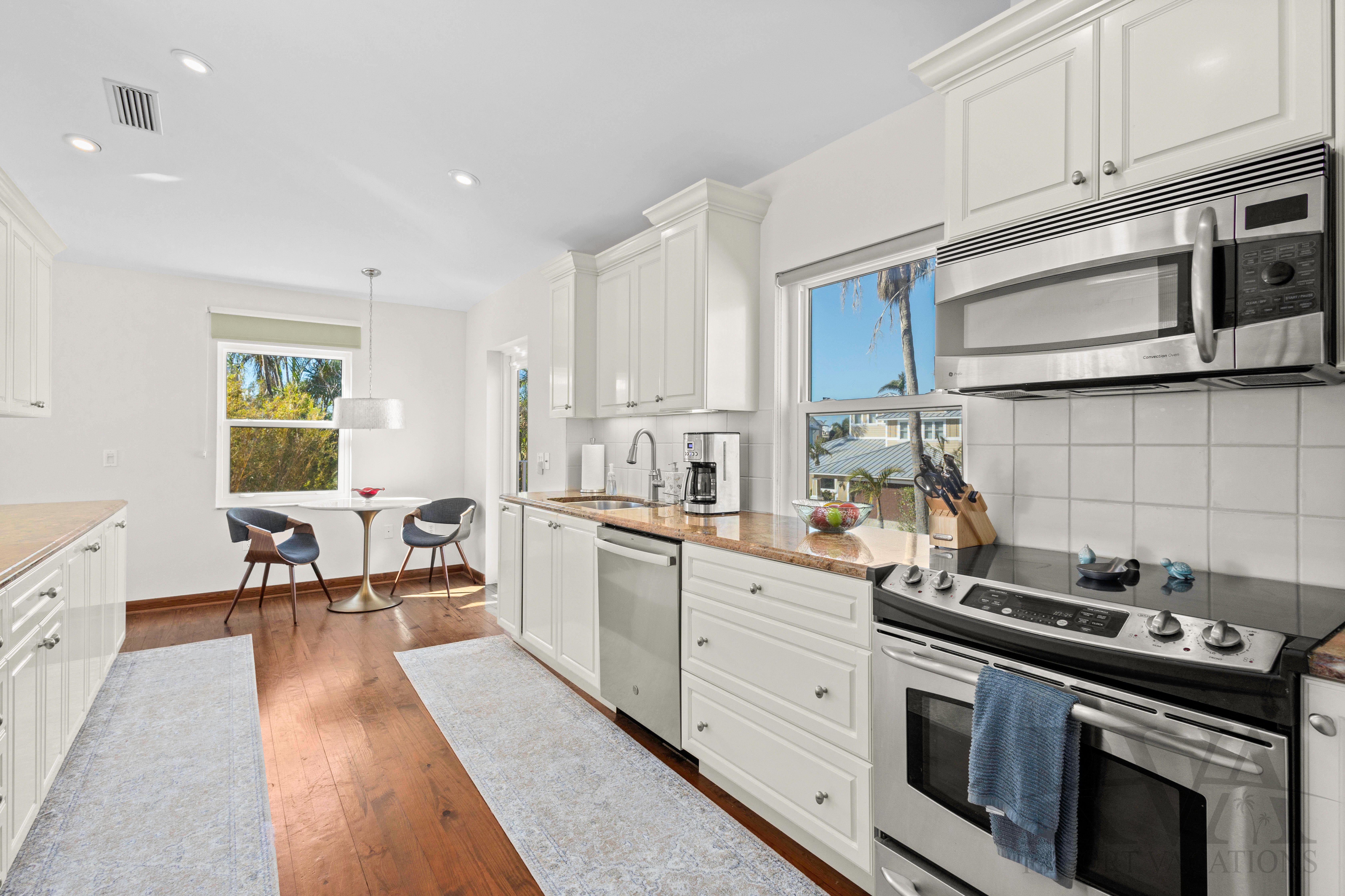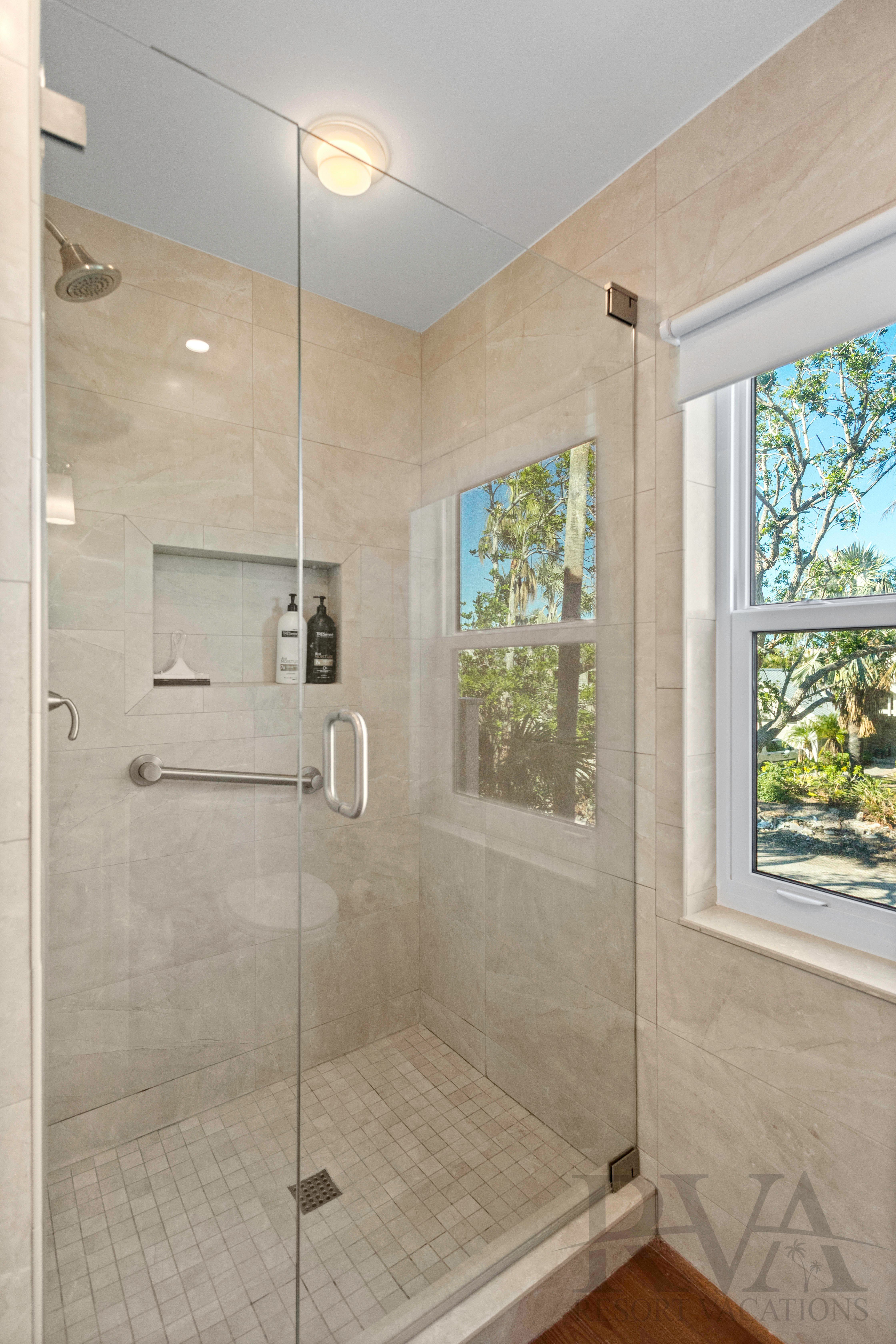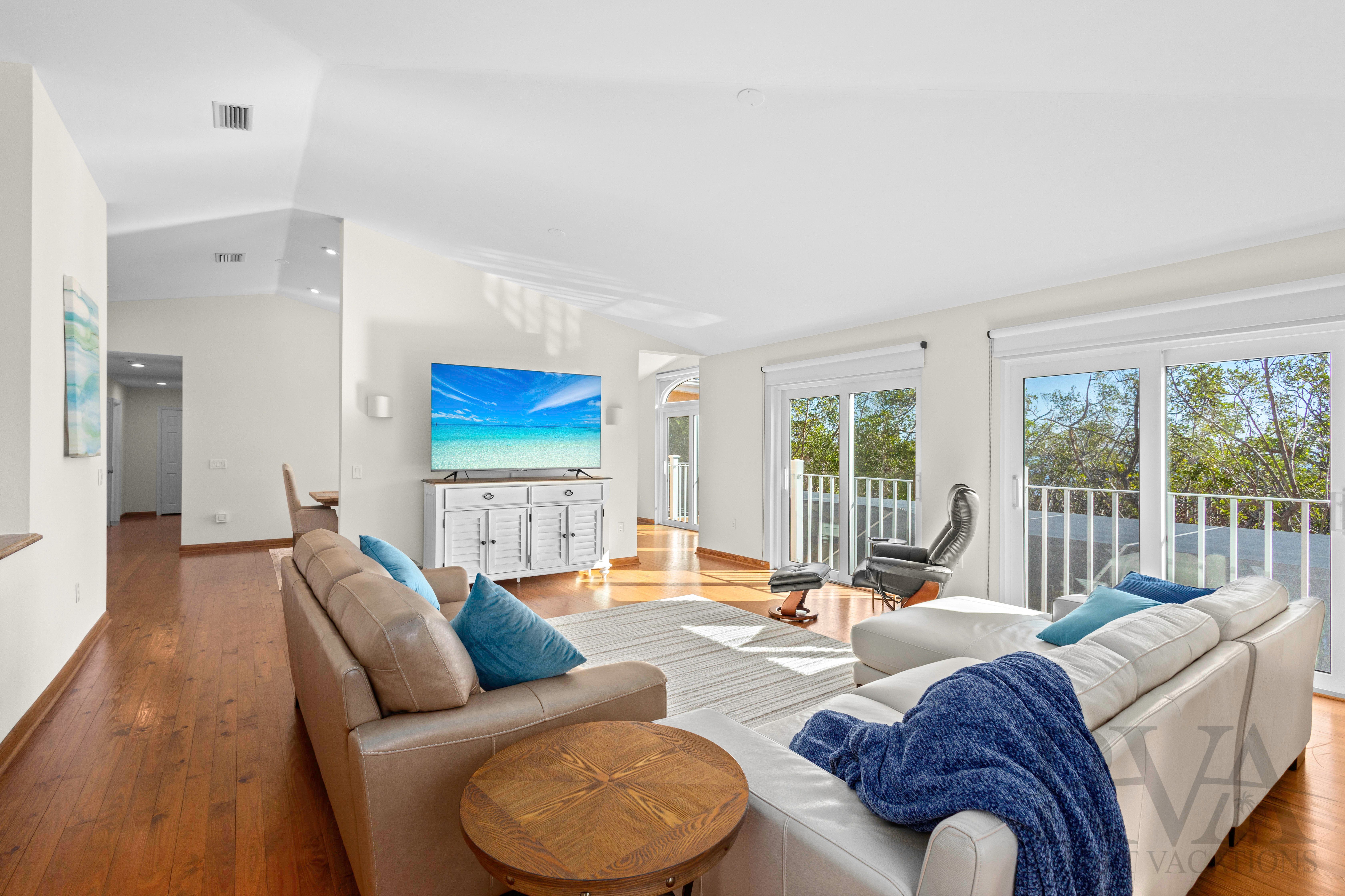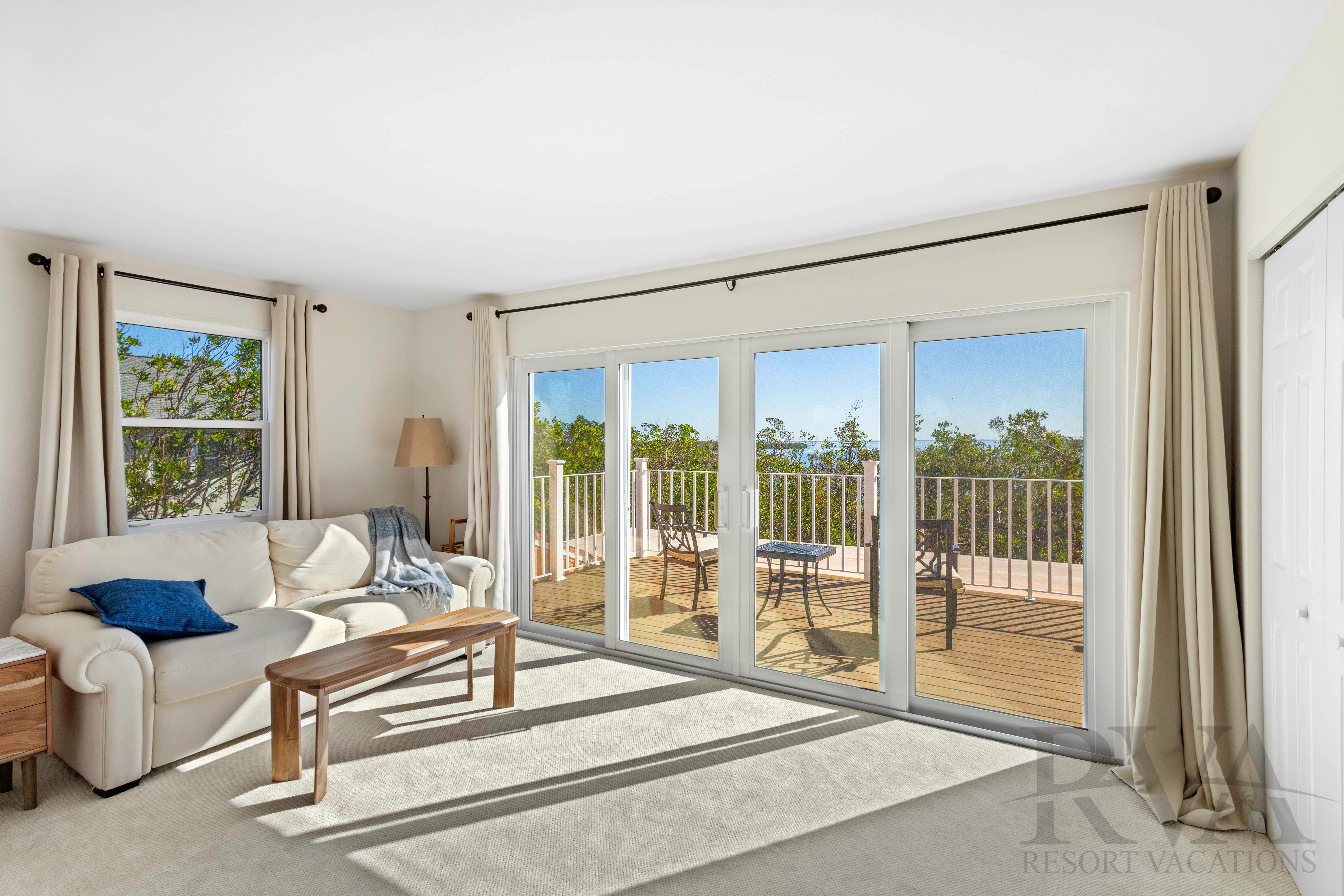 Retreat to the main-level primary suite, complete with a private bath and access to the large covered lanai, where you can savor the gentle sea breezes and tropical scenery. A second bedroom suite on the main floor also offers lanai access, while the upper-level guest suite provides ultimate privacy with its king bed, sitting area, and rooftop deck overlooking the bay.
