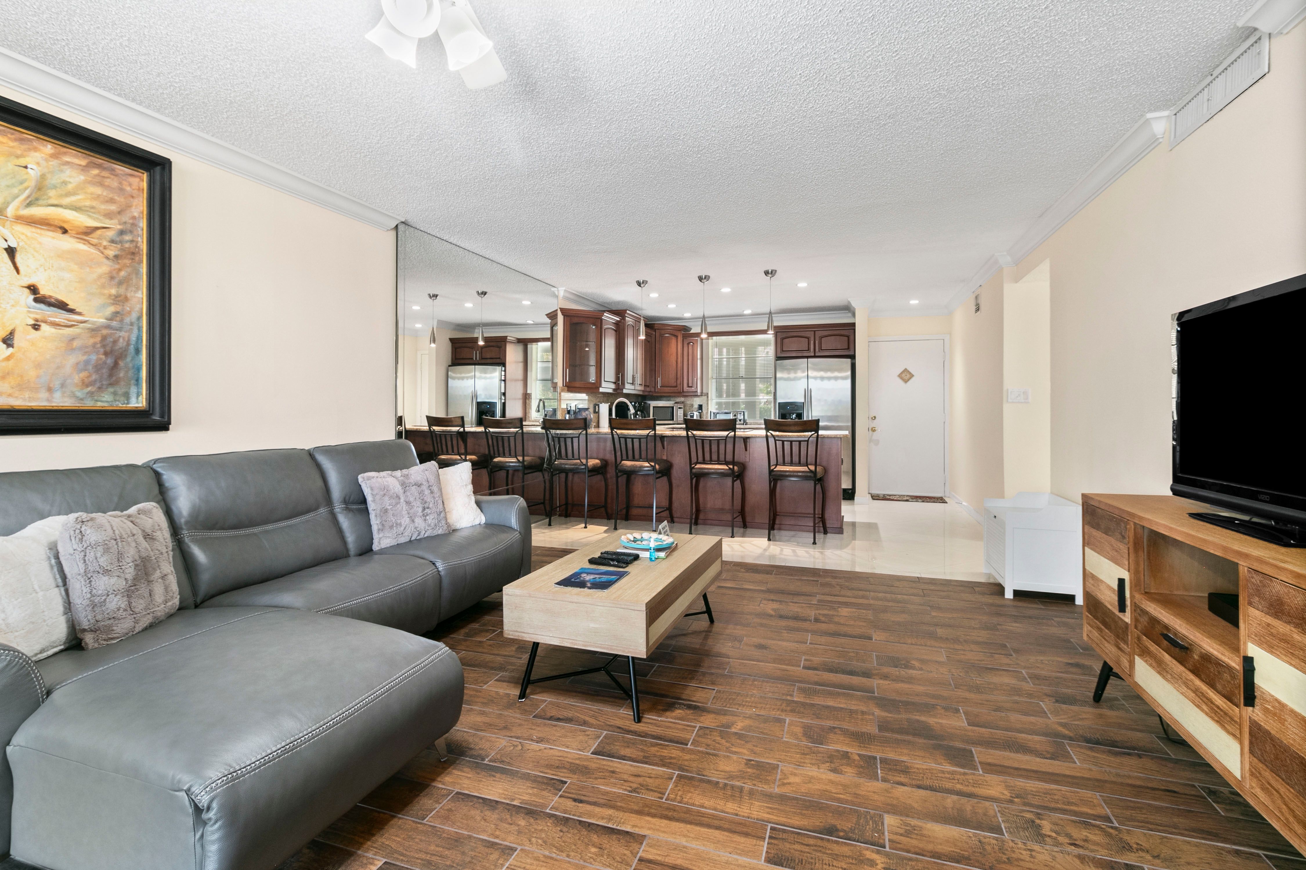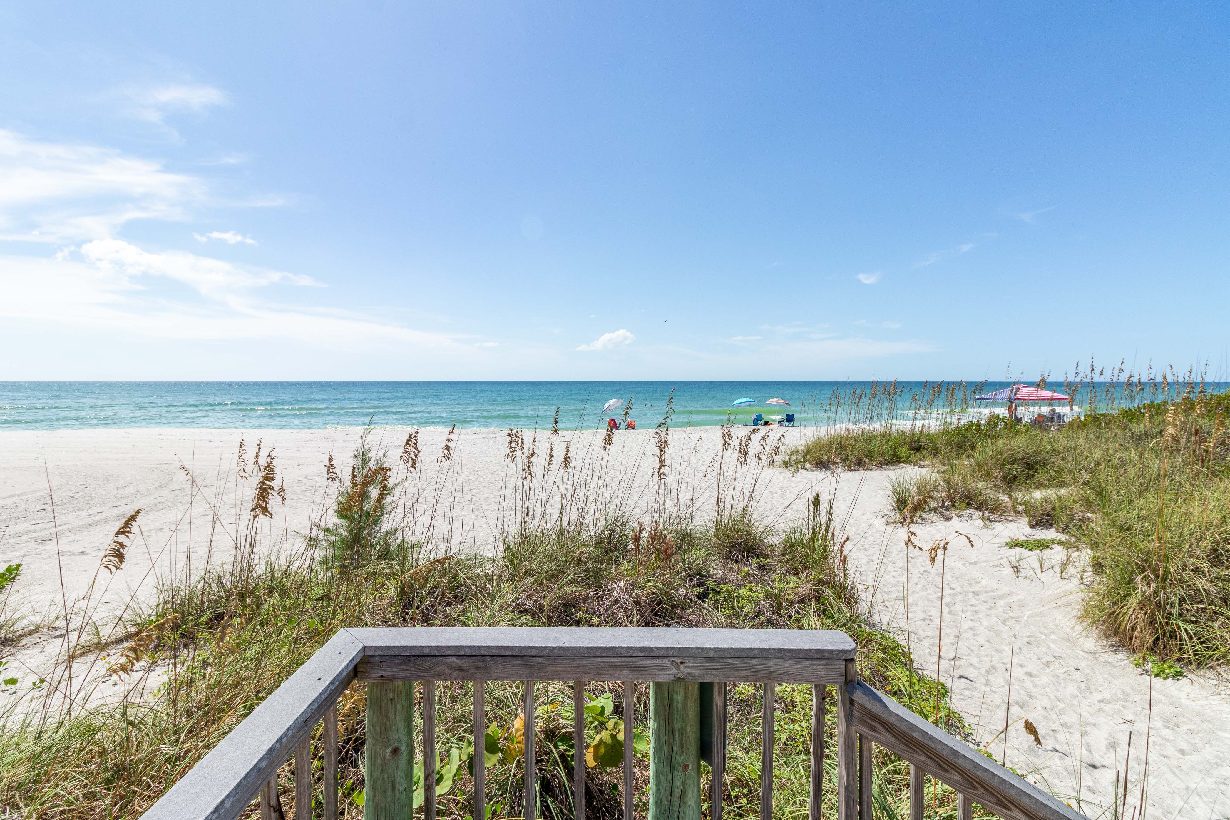 Sutton Place is perfectly situated on the tropical grounds of the Longboat Harbour Community. The two-bedroom, two-bathroom unit features beautiful views of the Sarasota Bay, spacious living area, full-size kitchen with stainless steel appliances and granite countertops, dining area and 3 flat-screen TV’s. If the amenities on the interior of the condo aren’t enough – the community of Sutton Place boasts two heated swimming pools, fishing pier and game room, complete with billiards and ping-pong; along with a fitness center and clubhouse. Deeded beach access is located directly across the street. Available for monthly rental.