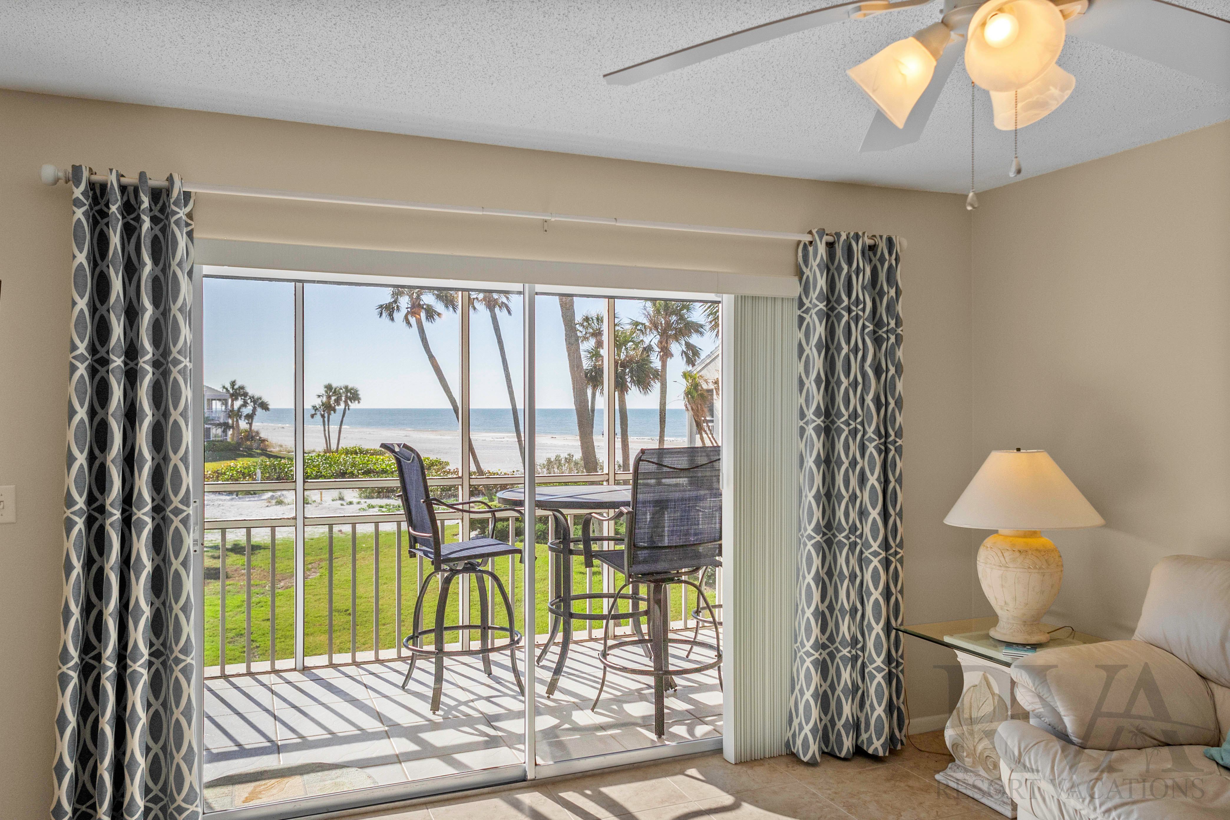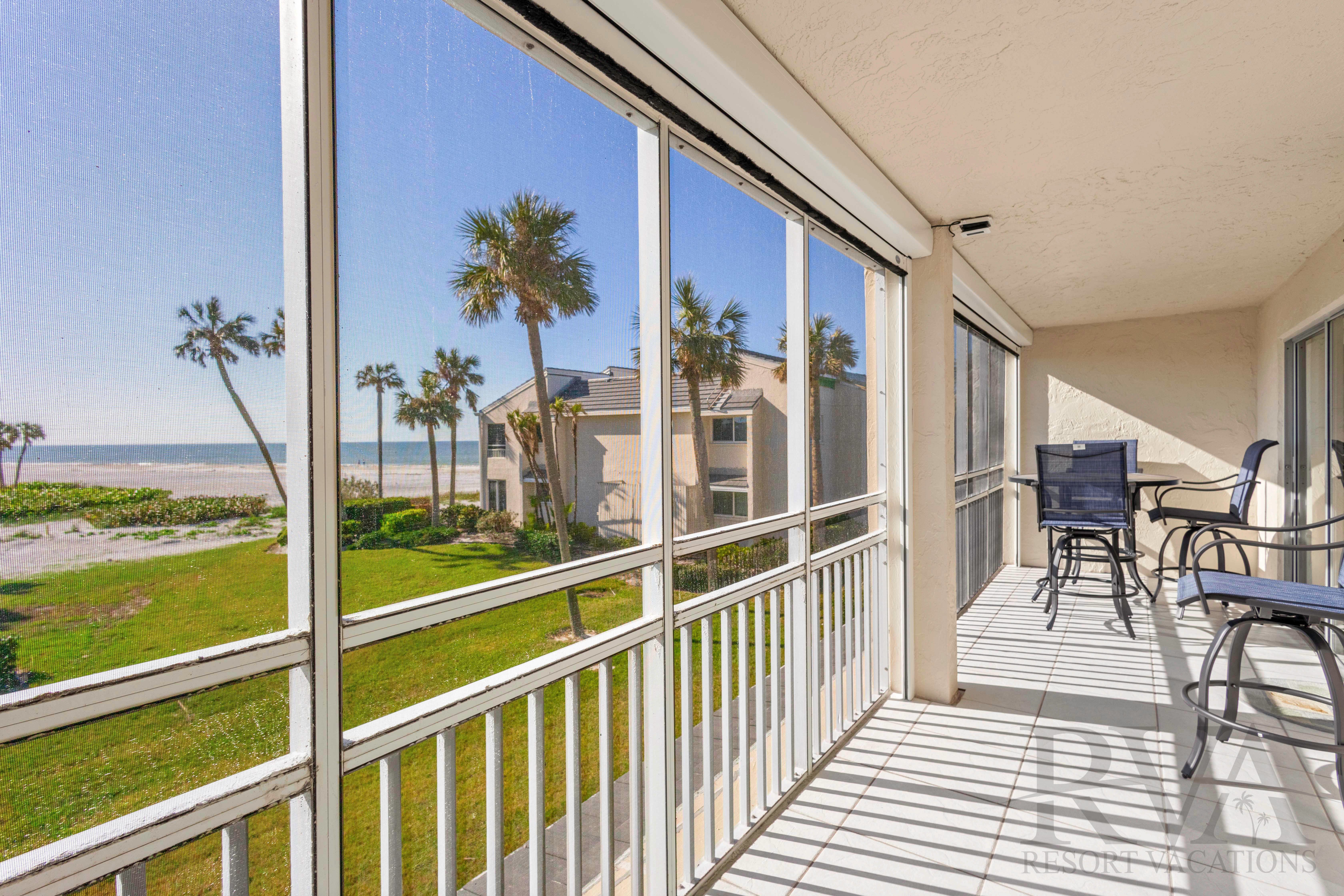 This two-bedroom, two-bathroom retreat features an open and airy layout with plenty of room to relax. Step onto the spacious 26-foot screened-in lanai, your front-row seat to the Gulf of Mexico's blue waters and powdery white sand beaches—a perfect spot for morning coffee or evening cocktails. The large master suite opens directly onto your private Gulf-front lanai, creating a serene space for watching magnificent sunsets.